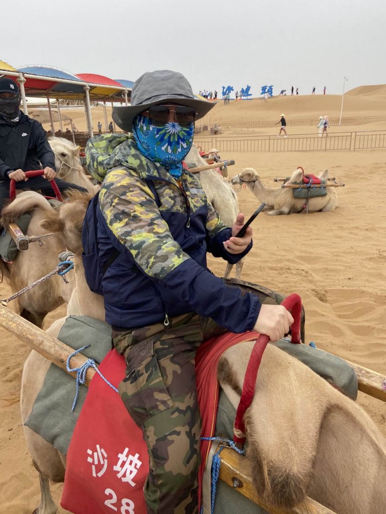 第二天出發沙坡頭。蒙古民族以“蒼天”為永恒最高神,故謂“長生天”(蒙語讀作“騰格里”)。騰格里沙漠位于內蒙古西部和甘肅省中部,東至賀蘭山,南越長城,西至雅布賴山,是中國第四大的沙漠。沙坡頭位于騰格里沙漠的東南緣,東起二道沙溝南護林房,西至頭道墩,北接騰格里沙漠,南臨黃河,長約38公里,寬約5公里,海拔在1300~1500米,總面積4599.3公頃,占中衛市城區土地總面積的3%。是國內四大鳴沙之一,也是全國二十個治沙重點區之一。如果你在螞蟻森林種樹,那么中衛是你和你種的梭梭樹相見的大好機會,螞蟻森林有一片樹林就是種在寧夏隔壁的內蒙古阿拉善盟。