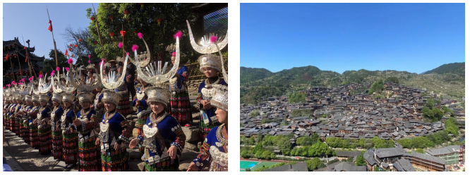 通過上午的休整,大家期待滿滿地來到苗族侗族自治州的西江鎮(zhèn),這里有全國最大的苗寨——西江千戶苗寨。苗寨中,可以選擇體驗傳統(tǒng)的少數(shù)民族服裝,也可以參觀苗族博物館熟悉少數(shù)民族的生活習慣并了解其形成的原因。