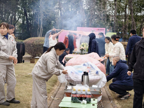 活動開始前,綜合管理部的小伙伴們早早奔赴現場,開始緊鑼密鼓的籌備工作。從溫馨雅致的場景布置,到游戲道具細致檢查,再到燒烤、火鍋食材的精心準備,每一個細節都飽含用心,只為讓大家在春日里收獲滿滿的歡樂與溫暖。